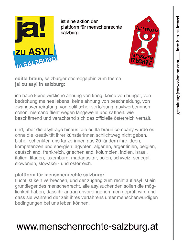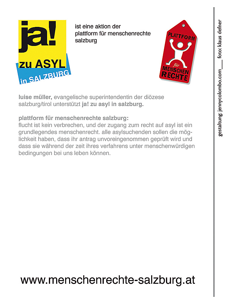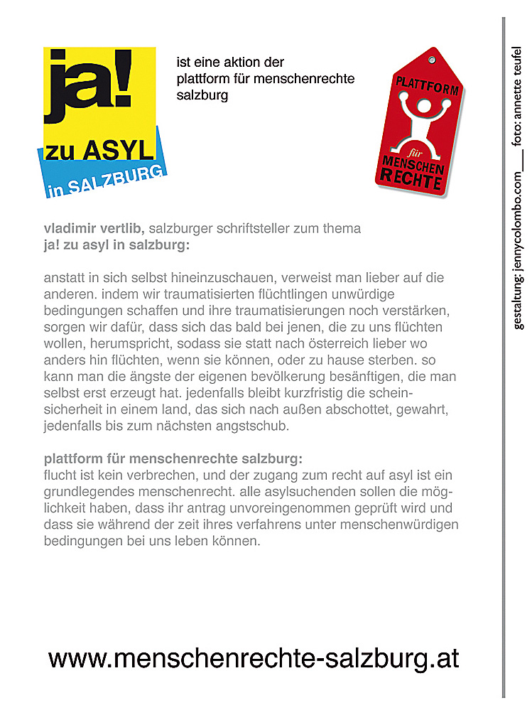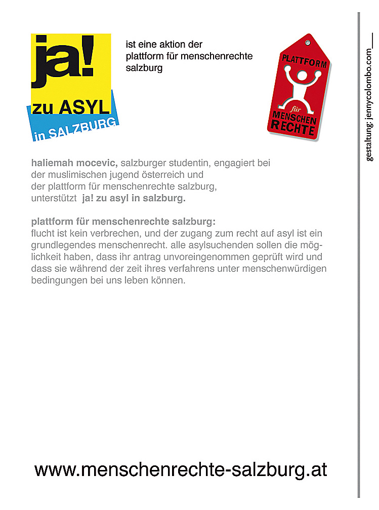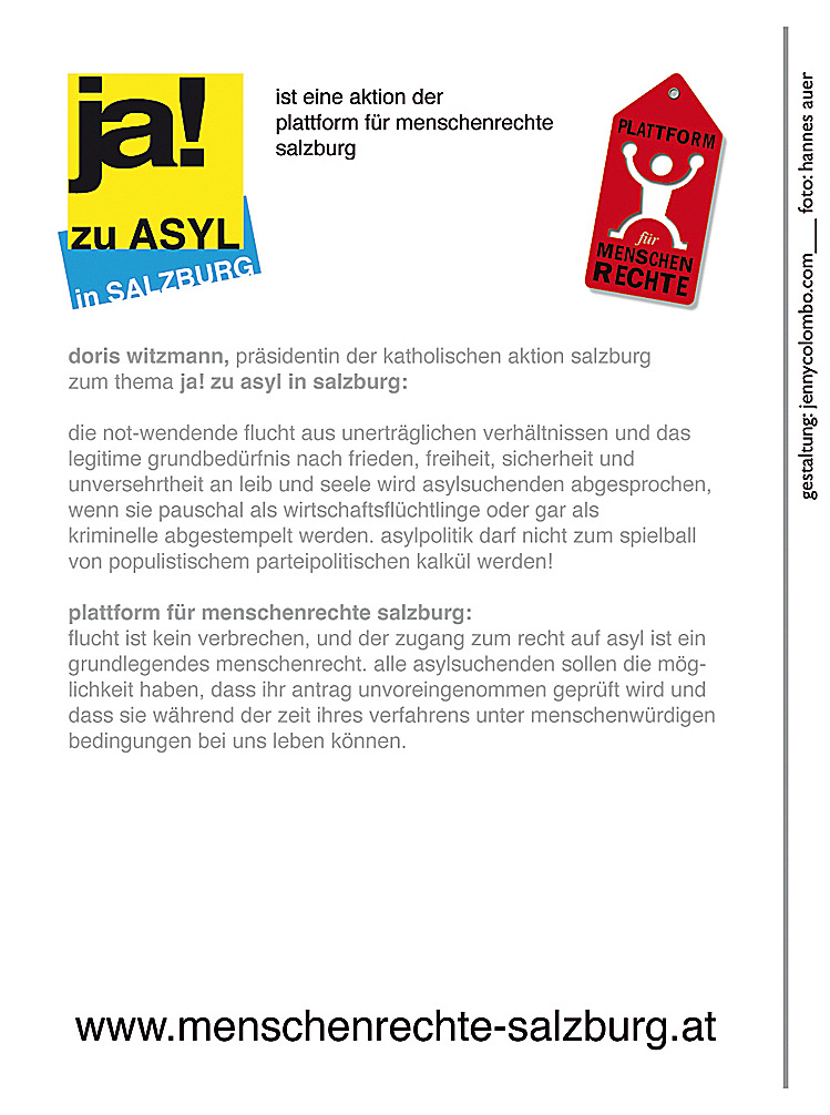 mit der aktion „JA! zu ASYL in SALZBURG“ will die salzburger „plattform für menschenrechte“ asylsuchende menschen in den mittelpunkt stellen und das bleiberecht thematisieren.