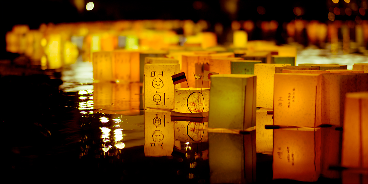 Lantern Floating Ceremony, Motoyasu River that runs below the Atomic Bomb Dome