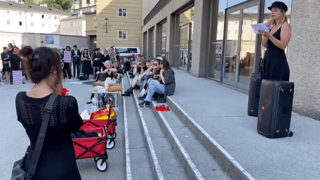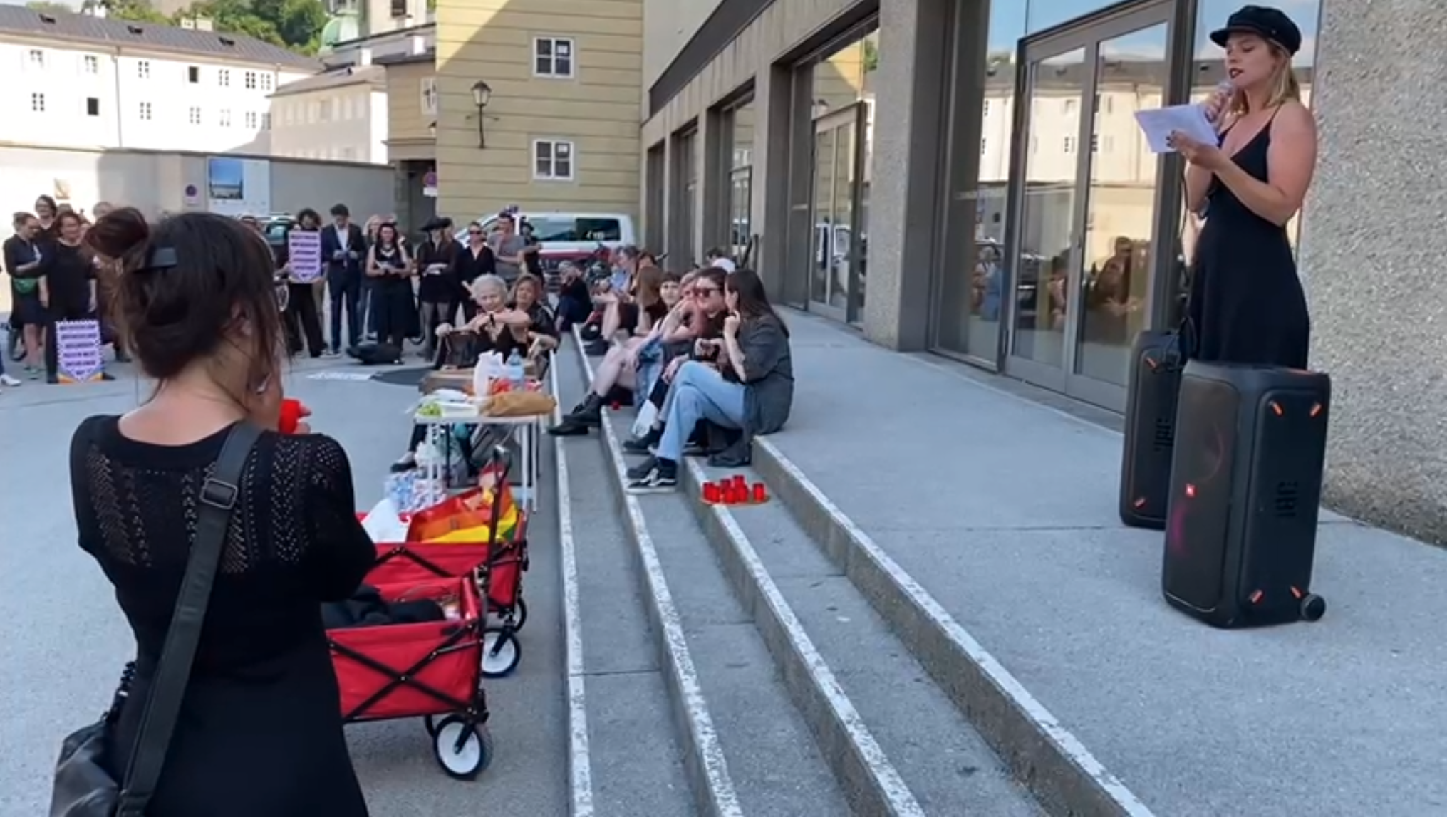 trauermusik, trauerrede, alles ein rahmen, der niederdrückende stimmung erwarten liesse. aber das gegenteil scheint der fall zu sein. sowohl auf der grossdemo, als auch bei den aktionen „salzburg ist am kochen“, „eisstand statt anstand“ sowie auch beim begräbnis des anstands von wilfried haslauer ist eines aufgefallen: auch wenn es viel zu kritisieren gibt, die solidarität jener, die sich bei diesen aktionen treffen, ist eine gewinnende, vielleicht nicht immer fröhliche, aber dennoch positive stimmung.