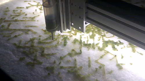 digitale technik und natur – ein thema, das sich durch das gesamte festival zieht – mutet mal sehr theoretisch, mal technisch kühl an. nicht so das projekt der amerikanischen künstlerin allison kudla. sie hat eine „druckmaschine“ entwickelt, die bio-architektonische muster aus moos und samen in einem nährmedium anordnet, dadurch entstehen „wachstumsmuster“, aus denen dann die pflanzen zu spriessen beginnen. es sind also lebende bilder, die auf basis von berechnungen eines computers entstehen, den die künstlerin sowohl mit den gesetzmässigkeiten von zellwachstum als auch mit jenen der stadtentwicklung programmiert hat und diese prinzipien dadurch miteinander verbindet. zurückgespiegelt ergibt sich daraus wiederum das verständnis des lebensraums „stadt“ als organismus. „capacity for (urban eden, human error)“ ist ein leises, aber sensibles projekt, das die künstlerin geduldig und begeistert allen interessierten erklärt.