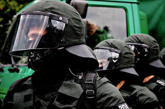 deshalb müssen die robocops von nikolas, angela und deren nachahmerInnen in kleineren ländern schon mal üben. es repressiert.