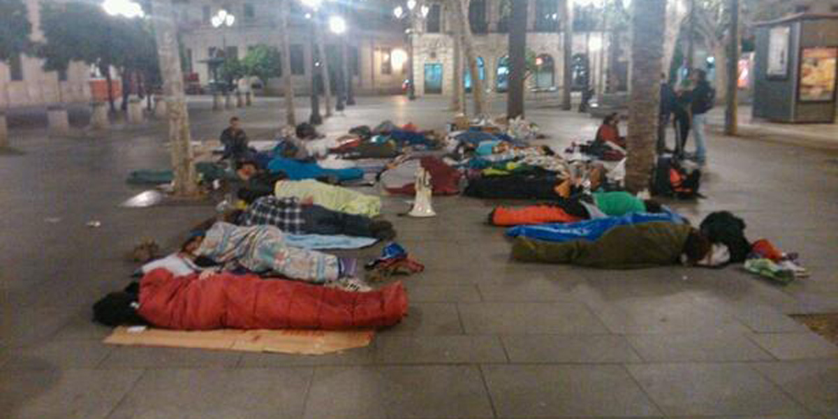 andere beschlossen direkt vor dem gebäude der stadtregierung auf offenem platz zu übernachten, zelte und aufblasbare matratzen wurden polizeilich untersagt.